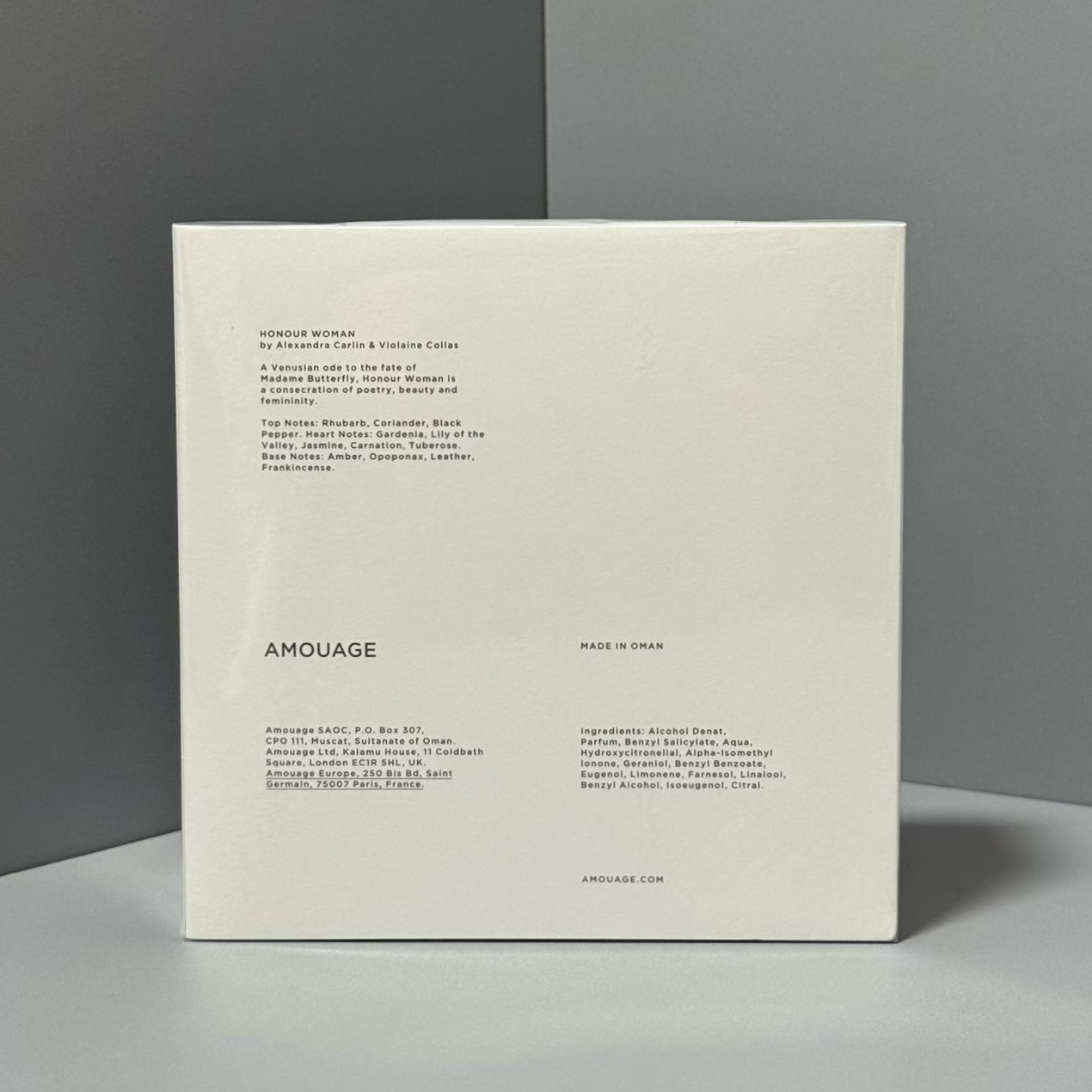 DetailThe Amouage Honour Woman Eau de Parfum 100ml is a perfume with an Oriental Floral fragrance. Here is its detailed introduction:Fragrance Notes: The top notes are pepper, rhubarb leaf, and coriander. The middle notes include jasmine, tuberose, gardenia, wild lily, and carnation. The base notes are vetiver, frankincense, amber, immortelle, and leather.Product Features: Inspired by honor and feminine charm, it creates a charming and powerful fragrance for modern women who embody both strength and softness. Its luxurious and complex fragrance structure precisely interprets the perfect balance between a woman's inner toughness and outer elegance, making it the ideal choice for those who desire to showcase their unique temperament through scent.Bottle Design: The bottle features a white square design, paired with a golden cap. There is a golden brand logo on the front of the bottle. The overall shape is simple and elegant, yet exudes a sense of luxury.